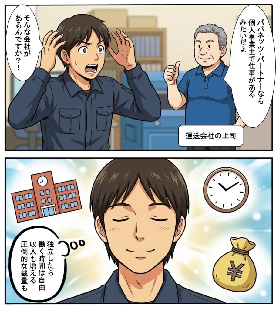 そしたら、当時の上司が、「個人事業主として物件の清掃や管理を請け負うパパネッツ・パートナー」を勧めてくれたので、運送会社を辞めてパパネッツ・パートナーを始めることにしました。