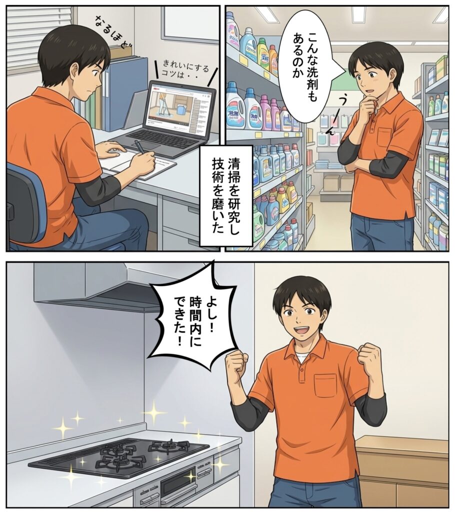 少しずつ経験を積みながら、洗剤の選定や汚れの擦り方など、最初の頃にできなかったことができるようになった実感があります。